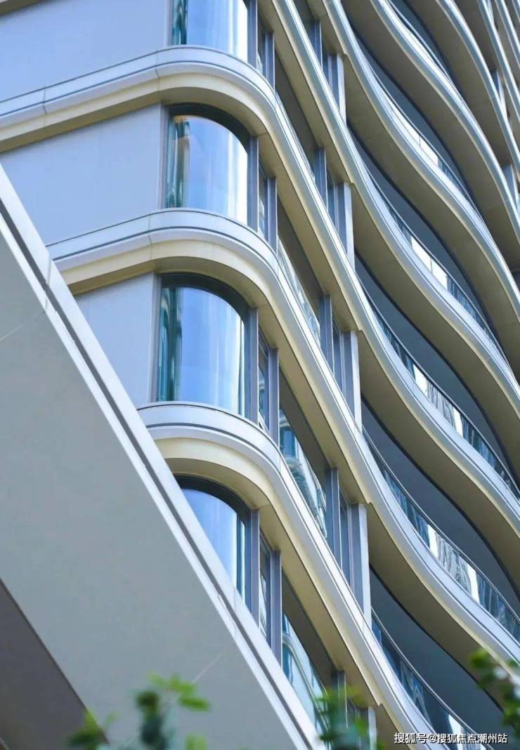 项目采用成本高昂、国际一流顶豪才会采用的铝板搭配全幕玻璃设计。在阳光的照射下,铝板散发出独到的光泽,色彩与材质简洁优雅,有着充满高级感的沉稳之美。而且,铝板材质在美观之外,还有着更强的防水、抗风抗震能力和耐久性。对房屋的居住品质,也是很大的提升。在此基础上,项目还采用了造价以及工艺要求更高的圆弧玻璃,让外立面呈现出与江水相互映衬的灵动感,也透露出项目注入在建筑设计上的“外圆内方”传统文化。现代美学与传统韵味,完美融合。