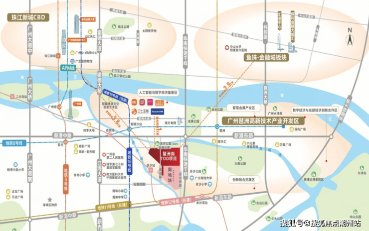 越秀琶洲南TOD位广东省广州市海珠区金运路1号,海珠赤沙TOD地块东侧紧挨华南快速干线,北侧隔着黄埔涌,对岸就是高楼林立的电商总部琶洲西区。