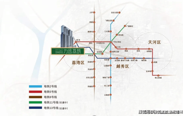 下楼即达地铁5号线与建中的13号线二期西场站。2站越秀、8站珠江新城,畅行全市。13号线二期预计2025年开通,未来通过站内换乘13号线,更可横跨白云、荔湾、越秀、天河与黄埔。地块就在珑悦西关附近,距地铁5号线、11号线换乘站中山八路站仅100米,为真正地铁上盖,可直达珠江新城、金融城、琶洲等核心板块。