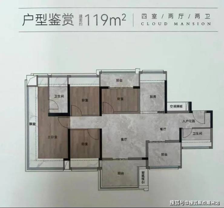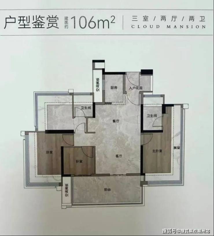 106㎡户型以东南朝向为主,较高楼层可俯瞰云山美景,主套房的L型飘窗设计增强了空间感;