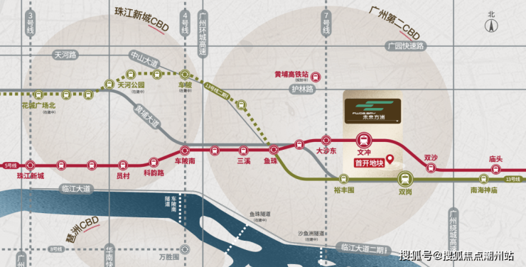 华润万象系商业,仅一路之隔,31万㎡大型TOD商业体已动工,引入华润万象系商业,将成为黄埔新地标!距离未来方洲首开社区仅约100米,未来逛街只需经过一条人行天桥!