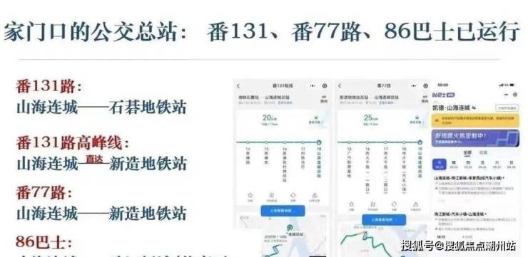 目前隔壁山海连城家门口也有个公交站点,其中番131、番77路、86巴士已经运行,去到新造地铁站也挺方便。