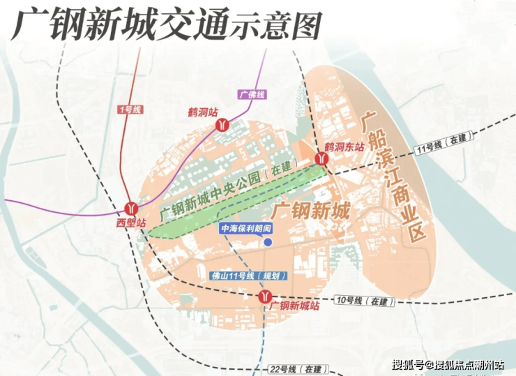 中海保利朗阅距离在建的10号线-佛山11号线直线距离仅500米,{10号线是从西塱开往天河客运站的车次,预计25年开通},距离在建的广州11号线鹤洞东站步行距离约1.6公里,距离最近的地铁广佛线鹤洞站约1.3公里,步行约18分钟左右,广钢的地铁线路可以说非常之多,自驾的话,周边有鹤洞路、东沙路、环城高速等。