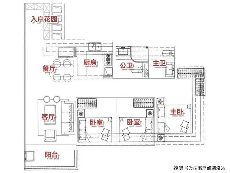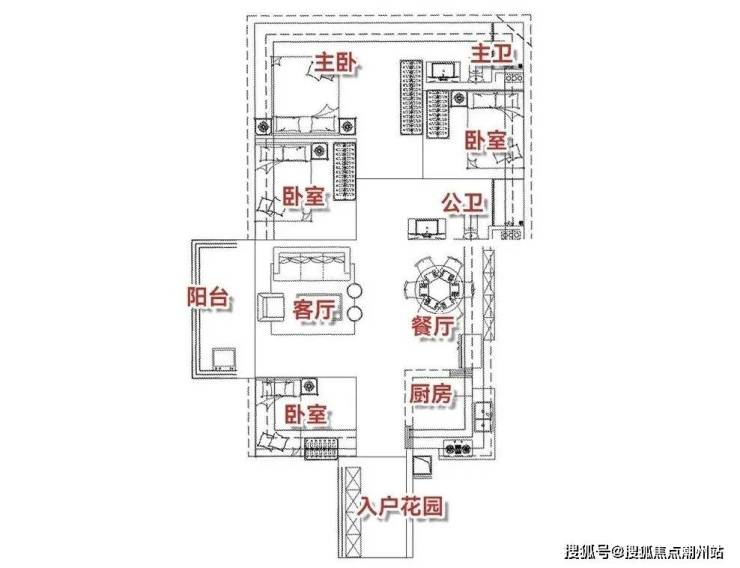 84㎡做四房两卫,设计很牛,基本是73㎡plus版,不同之处在于,玄关处做了书房。