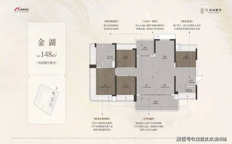 项目主推建面约98-149㎡全南向湖居四房,实现户户朝南、大开间、高得房率,全面提升居住舒适度。