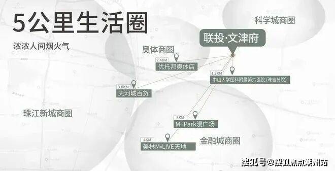 联投文津府属于天河奥体板块,到牛奶厂直线约750米,东侧100米吉山村。一路之隔执信中学天河校区,到珠江花城直线不到400米。文津府附近的天河智慧城、智谷已经落地11万+企业,其中高新企业1000多家、企业总部30多家,网易、小鹏、酷狗、阿里巴巴等皆落坐于此,因此这里也成为高新企业中高层通勤居住首选。