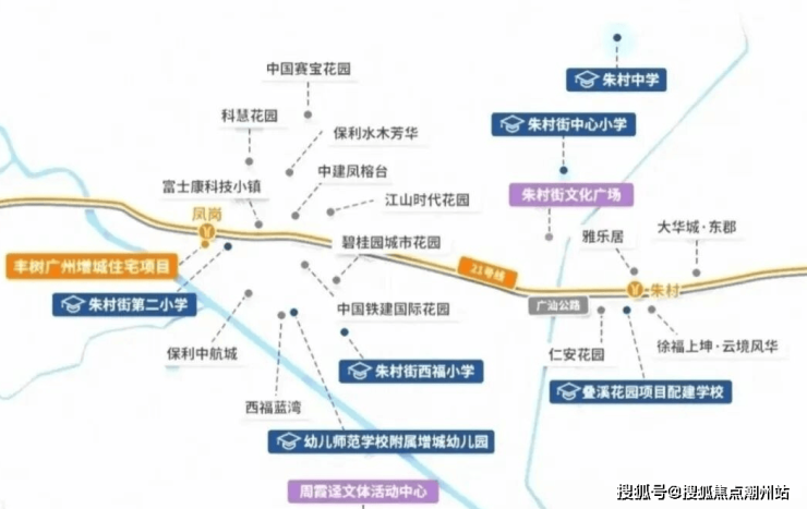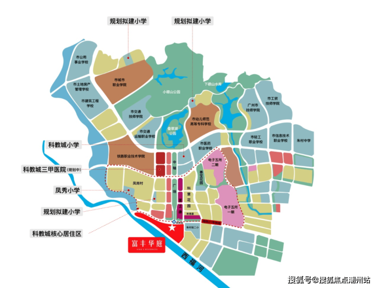 广州东部增城红盘富丰华庭,科教城核心21号线快线上盖,1站黄埔,4站天河; 新加坡滨河国际社区,89-118㎡超高使用率,南向一线滨河景观,享奢阔瞰景视野,实现“归家即度假”的生活体验。项目位于广州市增城区朱村街,广州地铁21号线凤岗站A出口附近;坐落于广州科教城(万亿级湾区科创走廊核芯的千亿科教城),投资1800亿,规划打造为国际一流教育聚集区和职业教育高地。