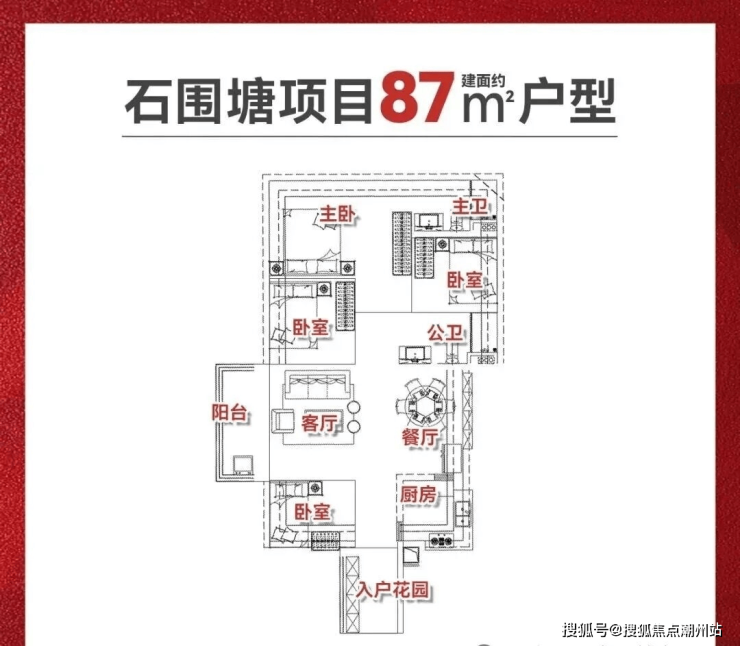 约87㎡则是4房2卫,但两个户型差距较大,其中一个是拥有独立玄关的竖厅。