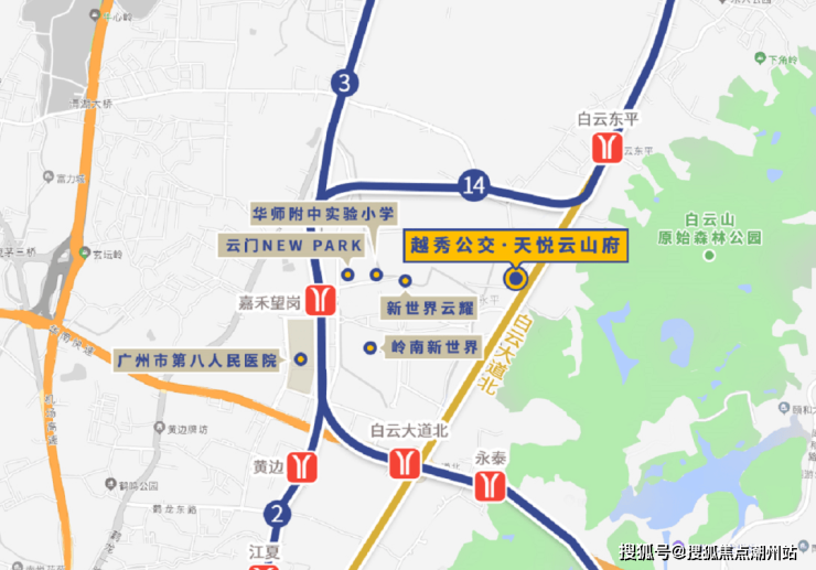 越秀公交·天悦云山府项目位于白云东平南路,该地块前身为白云大道北永泰客运站。由越秀地产于去年第一次土拍中以33.4亿元竞得,楼面价27191元/㎡。 脉享白云黄金中轴繁盛配套,这里有云门NEW PARK商场、云悦云里广场、百世商业广场等15万方成熟繁华商业,3km范围内百年华新、培英、华附小等11所学府荟萃。5公里内即达四大文化地标:广州市城市规划展览中心、广东画院、广州体育馆、白云国际会议中心,约2000米即可到达白云山国家公园,毗邻麓湖公园、云溪生态公园、白云公园/广州儿童公园等生态大境。