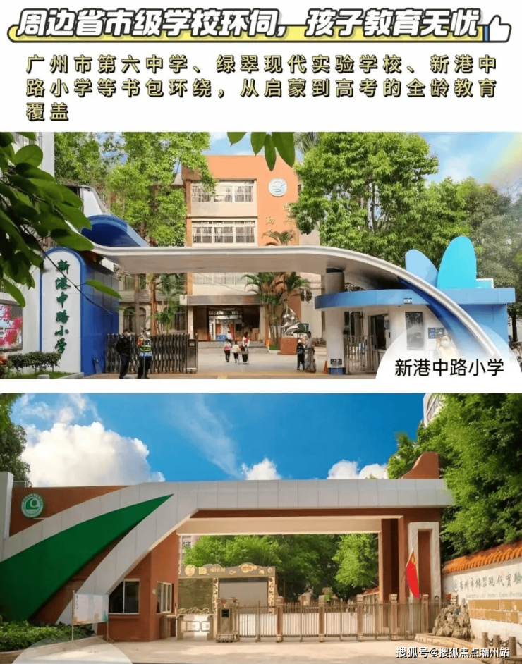 项目教育配套:周边有新田幼儿园、锦安苑幼儿园。新港中路小学距离项目1公里,直升绿翠中学。周边还有客村小学距项目1.3公里、市六中、执信中学琶洲实验学校等。