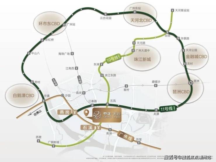 交通配套中建天钰坐拥双地铁,位于广佛线燕岗和石溪两个地铁站之间,步行距离分别是750米和900米,目前开通的是广佛线,燕岗站同时是大环线11号线的站点,去海珠琶洲、天河、越秀等核心板块都很方便;石溪站是广佛线和10号线的换乘站,可直达珠城,同时东西南北各个方向都通行。10站范围内轻松通达珠江新城、琶洲、金融城等重点商圈,坐享核心区红利。