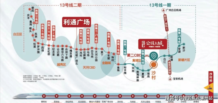 交通配套①地铁口:现在在售的约400米到13号线沙村站地铁口,南门出来400米就是沙村地铁站了,步行可到。目前在建13号二期横跨黄埔天河越秀荔湾和白云五大主城区,比肩3号线黄金动脉,开通后无须换乘,一轨直达珠江新城(花城广场北站),尽享主城繁华。高速口:出车库即达京港澳高速,速达黄埔区府及天河CBD,畅达穗莞深等大湾区。③城轨旁:地铁2站即达新塘南站TOD,东部核心交通枢纽,十轨交汇,北达白云机场,南通深圳宝安机场。