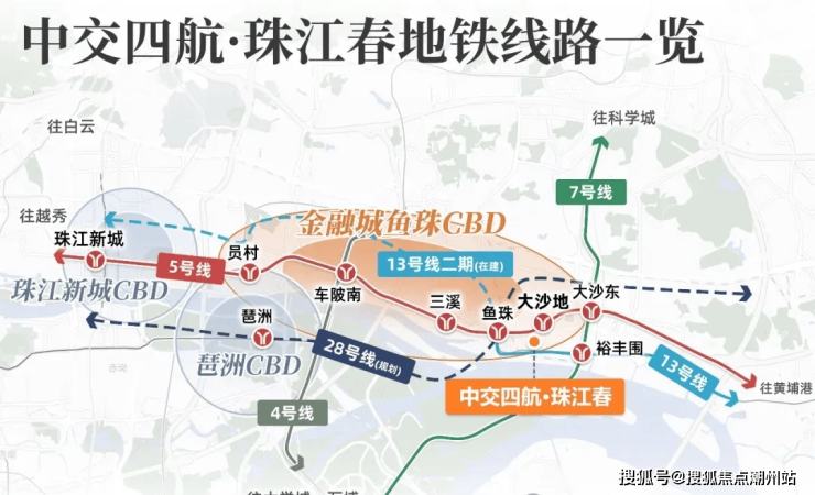 地铁交通:5/7/13三地铁交汇,约500米到鱼珠地铁站,0换乘一站到天河,直达珠江新城。而前往金融城,也仅需短短5分钟车程,20分钟即可抵达珠江新城,这样的交通优势无疑为鱼珠片区的发展注入了强劲的动力。