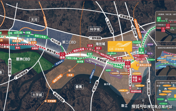 近5号线双地铁口,直达珠江新城:2地铁(5/13号线),5号线保盈大道、夏园站(已通车)无需换乘,直达珠江新城CBD;通过13号线夏园站,4站直达鱼珠CBD,5站到天河,二期开通后不换乘直达珠江新城。