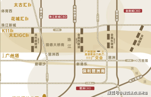 保利琶洲南项目的最大优势,无疑是地段,其位于琶洲南TOD东侧,现状是大围公园,北边是黄埔涌对望广交会展馆,南边是新滘路,西边是赤沙旧改,东边是科韵路。