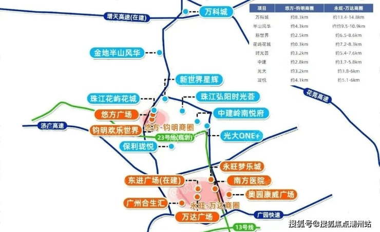 交通出行上,项目距离花莞高速的宁西互通口7公里,可联通花都、白云机场和东莞;项目也可以通过增天高速串联增城和天河;周边还有济广高速的新新大道入口等道路。此外,新白广城轨的开发区站距离项目4公里,目前正在施工中,未来将串联新塘TOD,可达湾区核心城市,为出行增添更多选择。