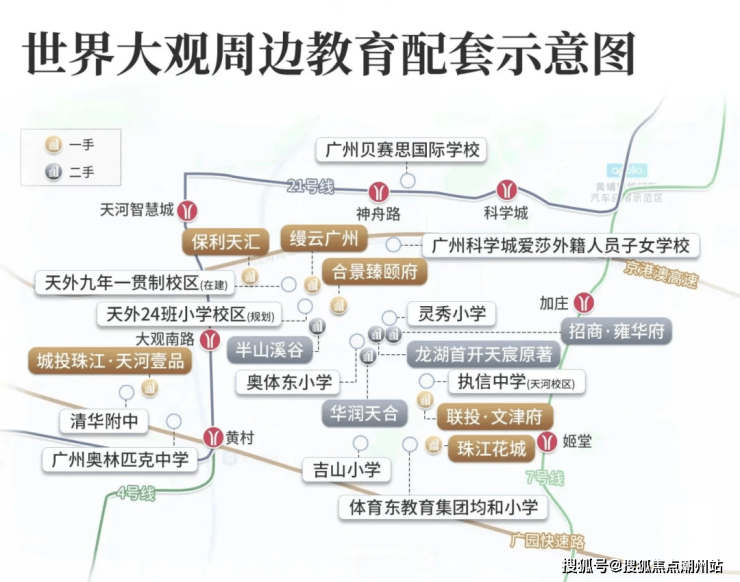 教育配套:配建的45班九年一贯制公立学校——广州市天河外国语智谷学校,2025年9月开学。联动周边6所国际学校、3所中学、4所小学、2所幼儿园,构建从基础教育到国际教育的全学段教育矩阵。越秀观樾超2000㎡湖岸会所,在商业上做了增量,自带约1万平的滨湖商业,学校官宣将引进广州天河外国语教育集团办学,配套的24班小学将由广州市天河外国语学校派出团队管理。缦云广州有5800㎡星际会所+N个泛会所,社区自带九年一贯制学校和幼儿园,已经确定引进了天河外国语学校办学。
