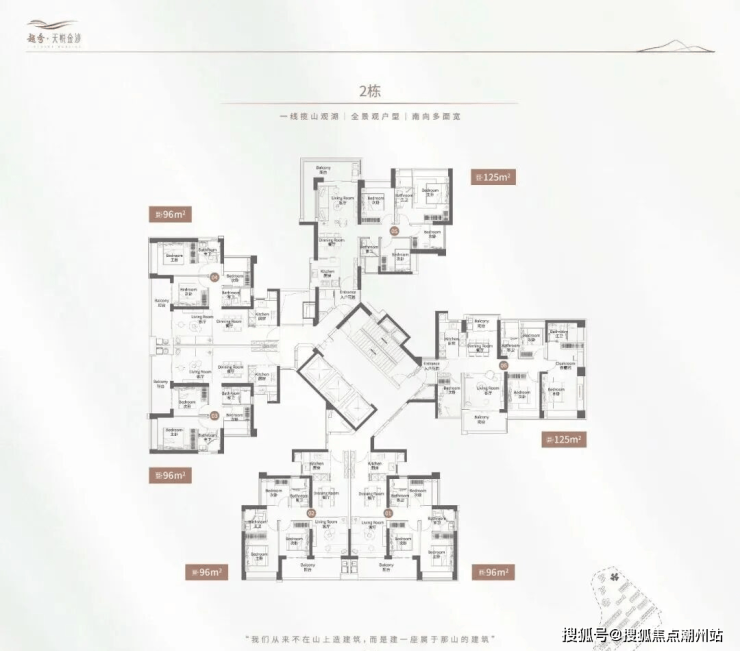 小高层95㎡/125㎡三四房、超高层96㎡三房、125㎡/141㎡四房、底叠150-200㎡三四房。