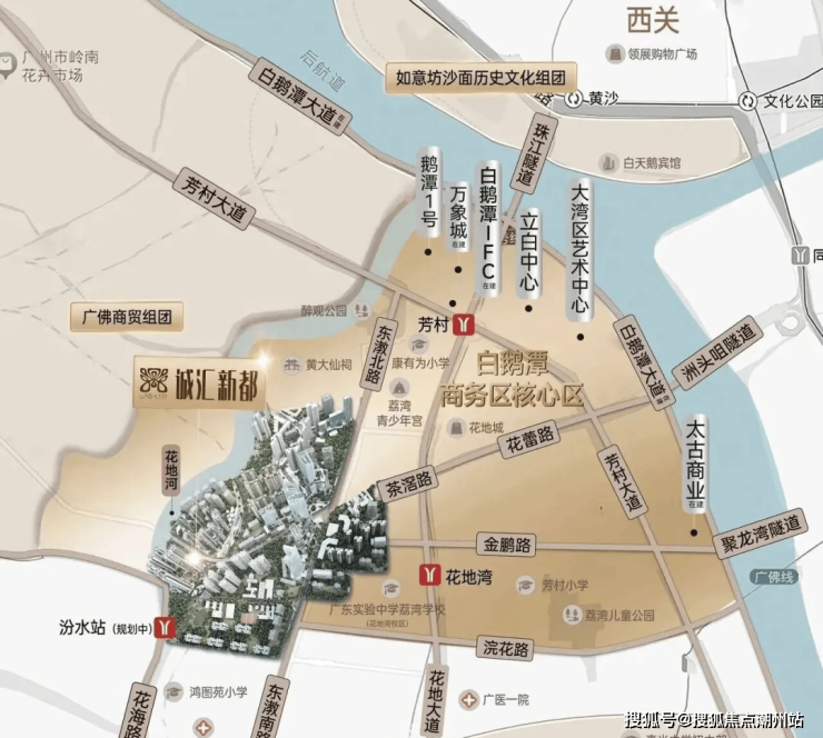 交通:花地湾出来,步行到项目约2公里。这个距离还是有点远,就不建议步行,未来这个版块也不会有地铁规划,出行依然只能依靠楼下的公交出行接驳1号线+自驾,不过好消息是,楼下就有茶滘总站,106路3站就能到芳村站,对于越秀上班的朋友,还是蛮友好的。距离楼盘600米左右有个远期规划的25号线的汾水站,后续就可以一个站就到花地湾,大大减少了通行时间。