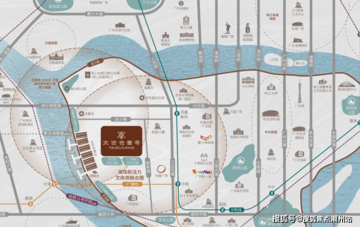 太古仓壹号坐拥老中轴延伸优势,串联白鹅潭商务区、聚龙湾综合体和太古仓文商旅圈,形成"水陆双循环"的顶级商圈格局。琶洲、白鹅潭、广钢、广纸等四大繁华商圈环绕,人文与艺术交相辉映,孕育全球前沿水岸生活的世界橱窗。