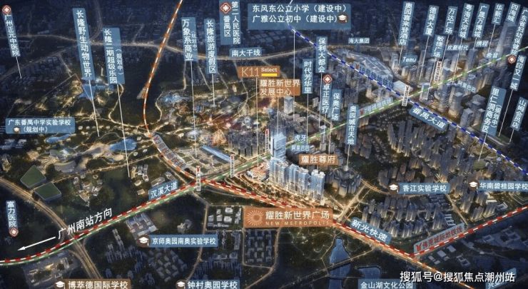 耀胜新世界广场项目位于万博-长隆商圈三轨交汇枢纽之上,三号线和七号线及佛莞城际轨道线交汇, 生活圈串连起珠江新城中央商务区、高铁南站及白云机场,快速便捷辐射东莞、广州、佛山三个大湾区城市。