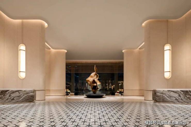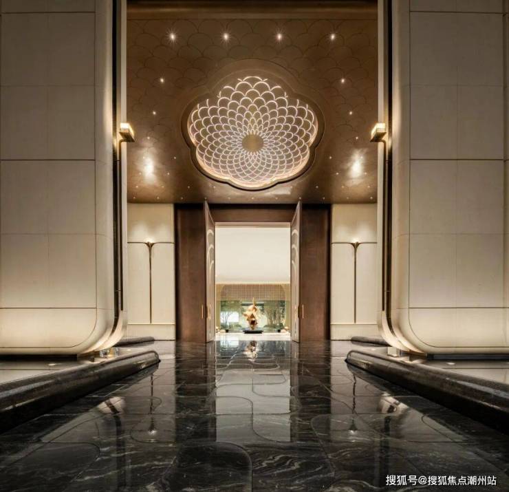三进院的艺术会所,7.8米净高会所大堂,搭配地面拼花三交六椀菱花,直接把 “高端” 俩字焊在脸上。