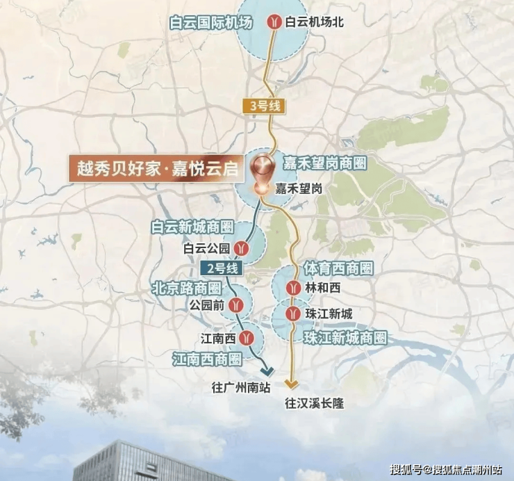 白云新城、公园前、体育西、江南西、白云机场这些市区核心商圈,都可以一线直达。先看区位,项目位于嘉禾望岗地铁站上盖,3条地铁交汇(2号线、3号线、14号线),客流量全广州最顶。白云新城、公园前、体育西、江南西、白云机场这些市区核心商圈,都可以一线直达。