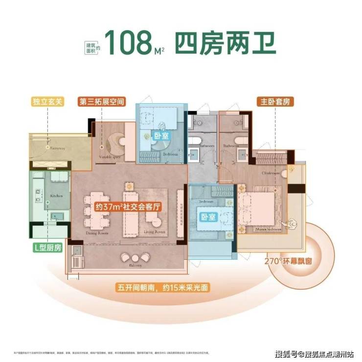 产品建面约88-108㎡三至四房是科学城首个使用率接近100%;建面约88㎡户型有两种,都做到了三房带主套。