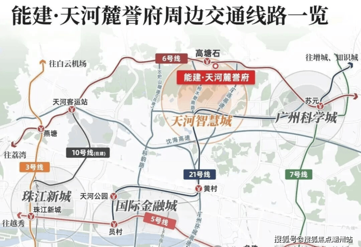 项目距离地铁6号线高塘石站B出口约850米,30分钟直达珠江新城、金融城、琶洲三大CBD。未来10号线东延线规划接入,进一步提升交通便利性。自驾方面项目北边就是广汕二路,500米就是广连高速,接驳广佛肇高速和广州环城高速。