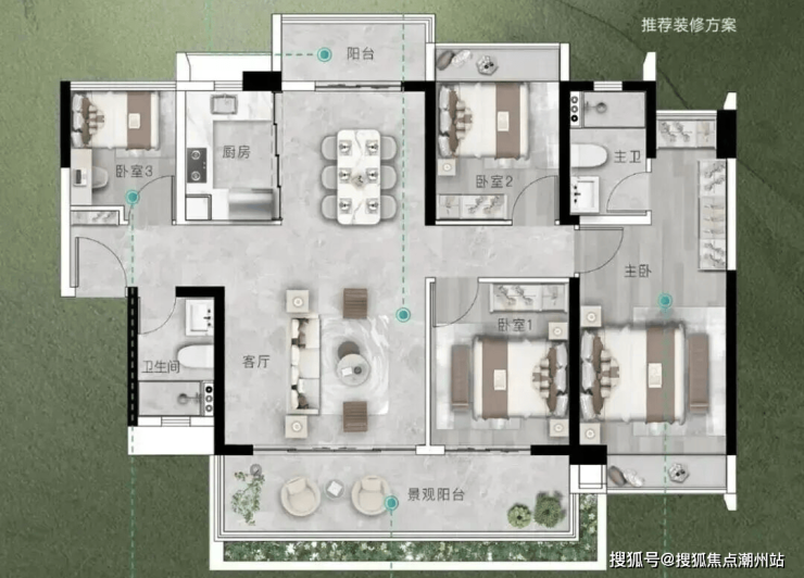 建面约133㎡四房拥有超强可塑性,次卧可与客厅连通,打造约7.2米巨无霸客厅,北阳台可与厨餐合并改造,打造开放式餐厨,同样超7米南向大阳台、可改造的阔绰方厅,满足不同家庭的多元需求。