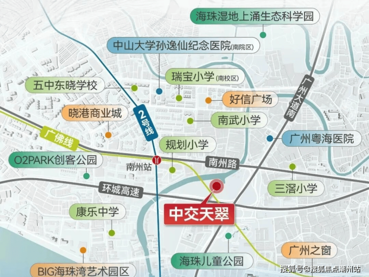 项目位于海珠西部南洲板块,就在广州大道南和环城高速交汇处,所以项目自驾出行还是挺方便的,不过由于小区紧邻两条主干道,所以噪音和粉尘影响也基本少不了,项目距离地铁也不远,教育方面也已经官宣了,可以就近入读绿城配建的的五中附小,中交天翠总共有7栋楼,算是板块内比较少见的大社区项目,小区旁就有座大型的市政公园,整体绿化也优于附近的几个盘,天翠目前主要在售6-7号楼,户型有82-91-113平的三四房产品,其中81平的总价370万起就能买到,91平的单价也是4.4万起,这个价格算是海珠西片区拥有学校+地铁中性价比最高的盘了。