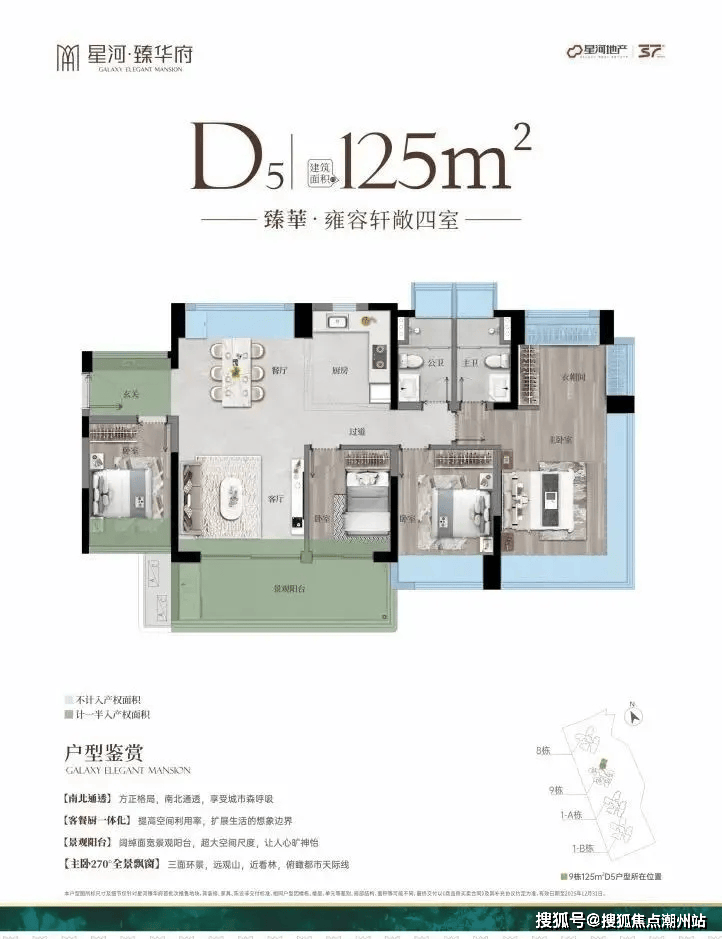 户型核心亮点85㎡三房三开间朝南+5.4米景观阳台,主卧270°飘窗瞰山,LDKG一体化无界厅堂95㎡3+1房灵动空间秒变四房,南北对流+双明卫,实用率碾压周边二手房20%(相当于白赚19㎡)125㎡四房双主卧套房+宽幕阳台,四开间朝南采光无死角