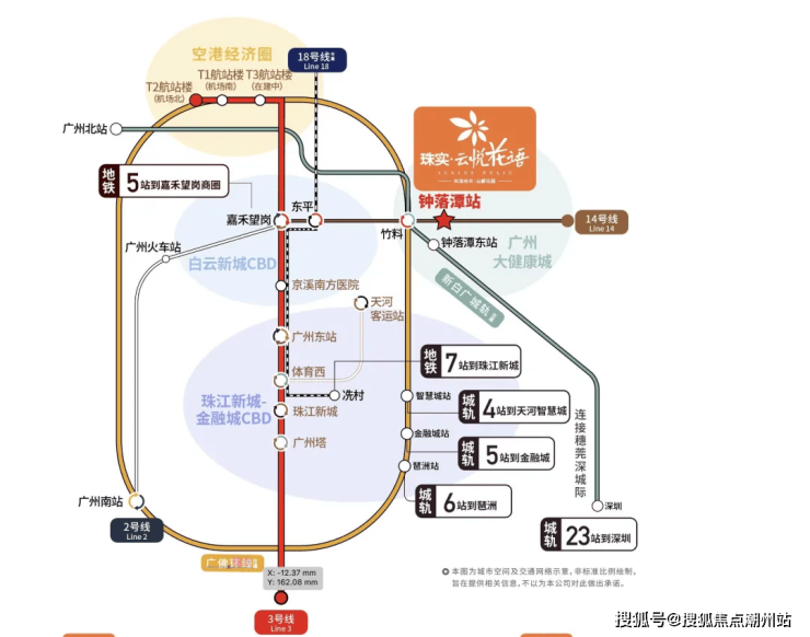地铁:地铁14号线钟落潭站已开通,项目离地铁A出口约500米,5站到嘉禾望岗,换乘2号线或3号线,直通白云新城与珠江新城。城轨:广佛环线(预计2023年通车)4站直达天河智慧城,5站到金融城,6站到琶洲(预计2023年通车),新白广城轨(预计2023年通车)1站直达白云机场。