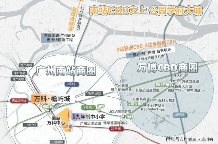 万科檐屿城位于南站商圈,南站黄金8km,18座地标配套广州南站串联万博、长隆两大板块,以“超级枢纽+超级商圈”模式平移都市中心,南站8km范围聚集番禺70%的经济总量、70%的常住人口,拥有前沿的产业体系+集中的商业配套+宜居的生态资源+高效的通勤速度,是番禺最适合生活居住的组团,打造广州不可复制的“黄金动脉”。