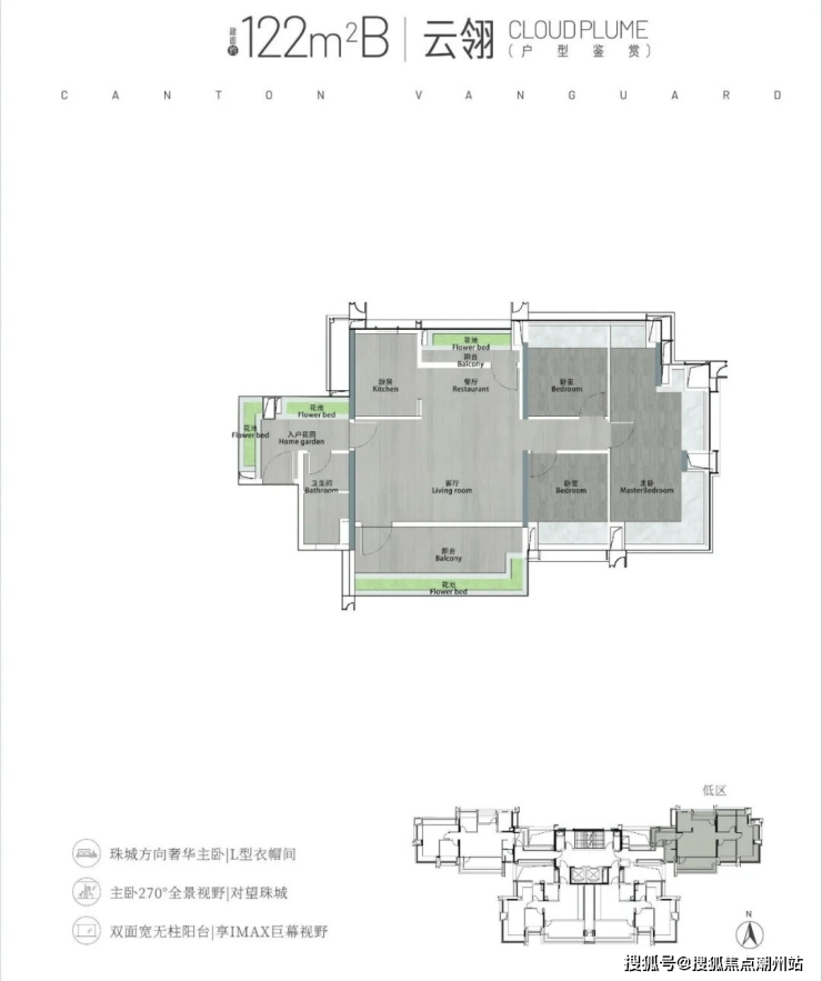 139㎡天际大平层4房3卫,仅15套,配置占据东边梯腿 23层以上270°环幕视野尽揽珠江新城繁华。
