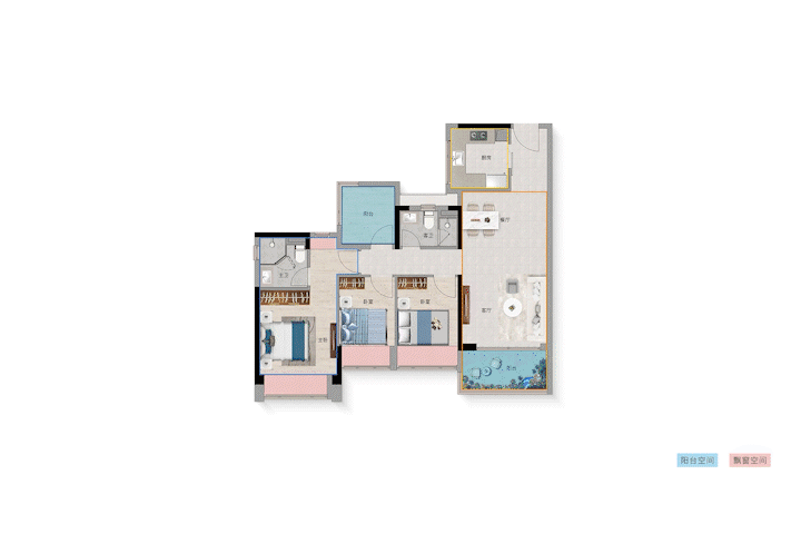 建面约106m² 百变灵动户型,以对生活的 升级 考究,打造容纳百变的阔绰布局。