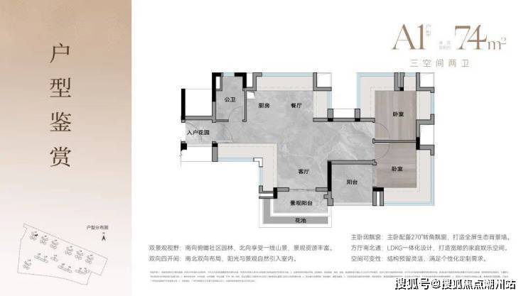 约74-94㎡三至四房,,2梯4户设计,四面宽朝南,大方厅设计,小家也有大精彩。