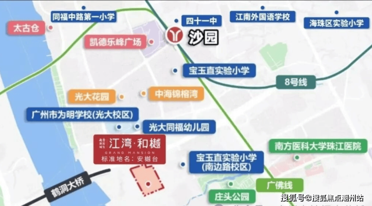 越秀珠实城发江湾.和樾项目距离地铁8号线沙园站约800米。距离广佛线燕岗地铁站约1.2公里。距离首条环城线11号线南石头站约900米。自驾有在建的环岛路串联海珠9纵9横路网。