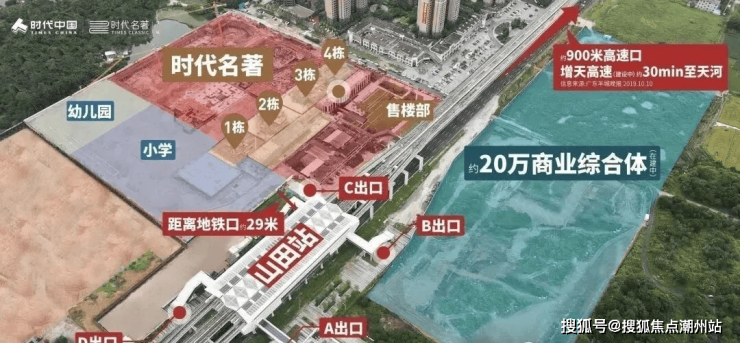 交通配套全增城唯一同时具备地铁和高速交通的项目。时代名著离21号线山田地铁站仅30米左右,可以说就在“家门口”。项目所宣传的“地铁3站到黄埔”,是指从山田站坐到凤岗站,再换快线到达黄埔知识城的镇龙站,耗时约14分钟;“5站到天河”,是指到天河大观南路站,耗时约38分钟。自驾的话,900 米到高速口, 30 分钟到天河。
