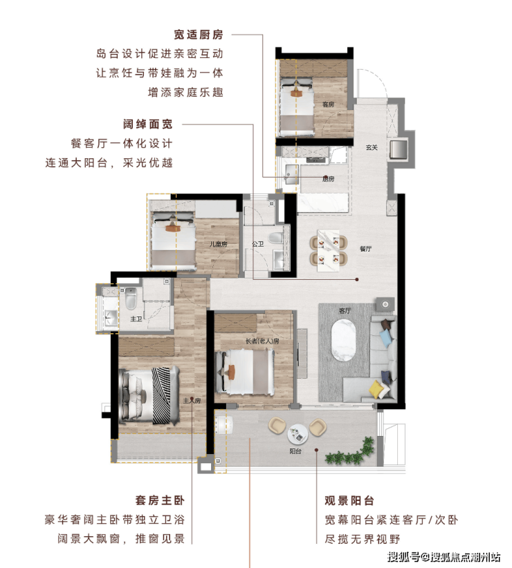 三开间朝南|12㎡宽阔阳台|超广角江景视野|270°主卧飘窗
