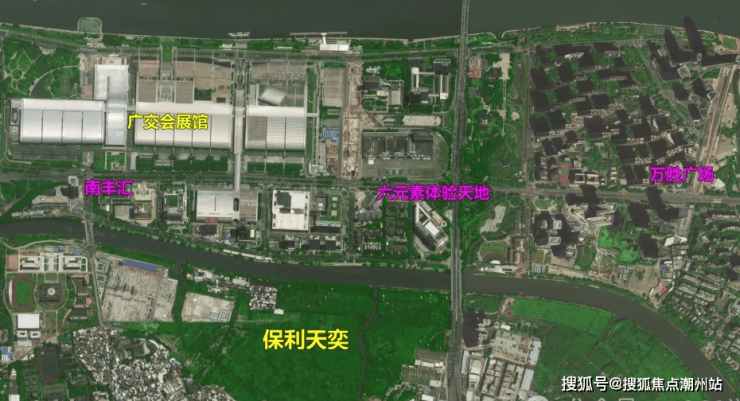 保利琶洲南项目的最大优势,无疑是地段,其位于琶洲南TOD东侧,现状是大围公园,北边是黄埔涌对望广交会展馆,南边是新滘路,西边是赤沙旧改,东边是科韵路。