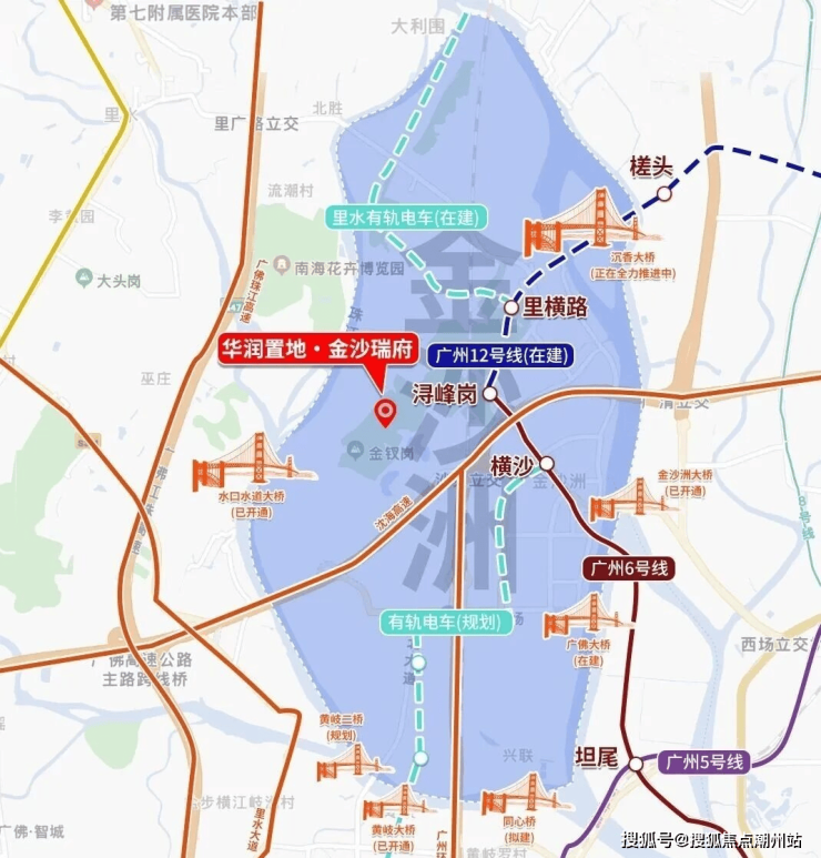 交通配套项目距离地铁6/12号线浔峰岗站直线1.8公里。自驾有金金沙洲大桥、大坦沙大桥、沉香大桥在建、同心桥(在建)、水道口大桥、黄岐大桥、丰岗大桥、碧江大桥(规划中)全面环绕。