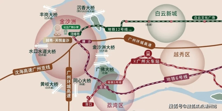 项目距离地铁6号线浔峰岗站约2.5公里,如果需要地铁出行的基本就不太现实,广州地铁12号线已经通车,不仅能缓解6号线金沙洲段严重拥挤的问题,还能大大缩短金沙洲到白云新城的通勤时间。