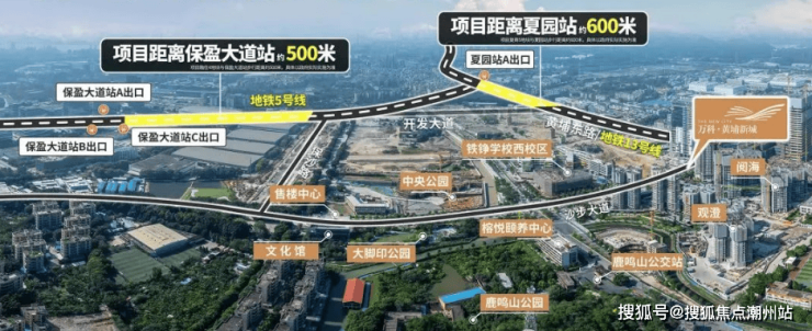 近5号线双地铁口,直达珠江新城:2地铁(5/13号线),5号线保盈大道、夏园站(已通车)无需换乘,直达珠江新城CBD;通过13号线夏园站,4站直达鱼珠CBD,5站到天河,二期开通后不换乘直达珠江新城。