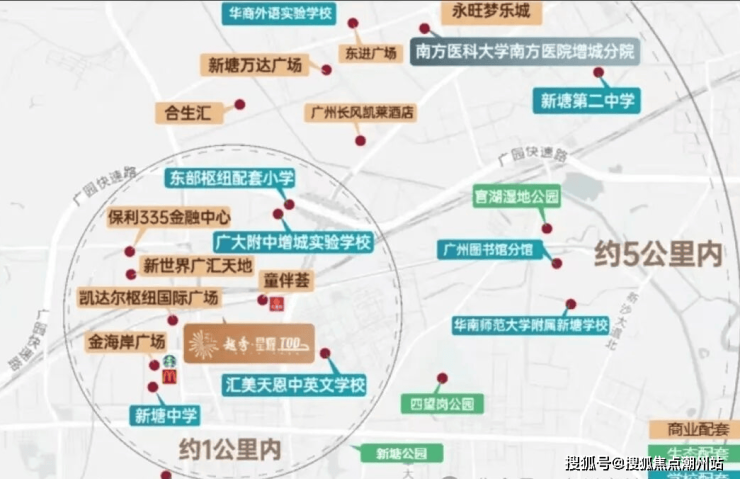 位于广州市增城区新塘聚宝路与丰华西路交叉口西北400米处,广州地铁13号线新塘站附近;占位大湾区黄金A字尖端、广州东部TOD枢纽中心,享十轨交汇(5地铁3高铁2城轨)环绕,轻松畅达全广州,贯穿广深等湾区核心城市;三大核芯功能区,三大千亿级产业集群,拥享湾区黄金资源辐射。