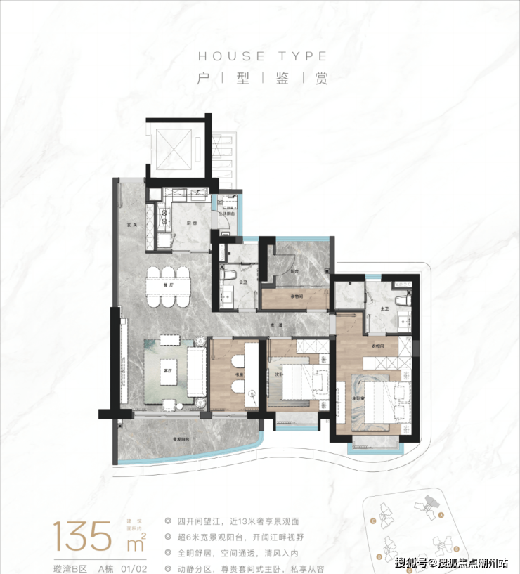 项目在售建面约109-253平滨江现楼,以及建面约105-275平临江大平层公馆。