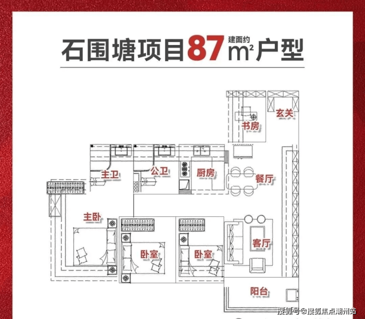 当中,77平三房带2卫,88平户型可做四房,有竖厅和南北对流两个版本可选;106平四房户型,四开间朝南,带超长景观阳台。因为项目只有两栋楼,两栋都是26层高、2梯5户设计,算下来,总货量只有约240套。约87…