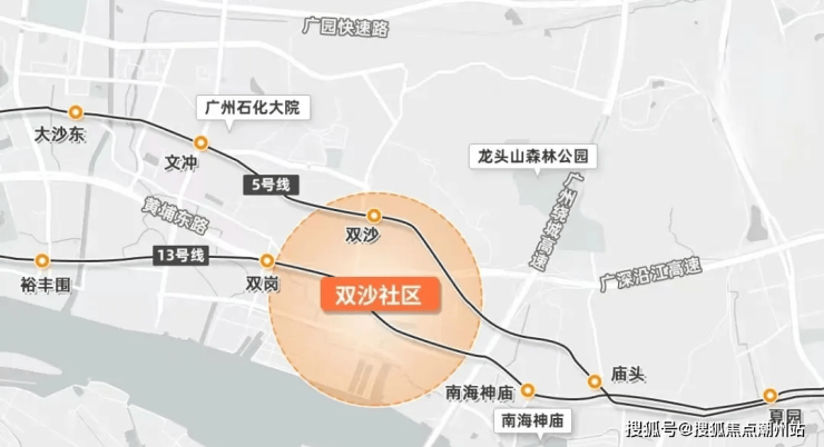 项目首开组团距离5号线地铁双沙站B口,也就50米左右,算是真正的地铁上盖项目,首开组团也是整个旧改距离地铁口最近的组团,在这乘坐5号线无需换乘,可直达金融城、珠江新城等地,中途还有13、7、4号线三轨无缝换乘,可连接琶洲、万博、科学城等地,自驾的话,周边有黄埔东路,广园快速、广澳高速、沈海高速等干线,去鱼珠、金融城、珠城等地也比较方便。