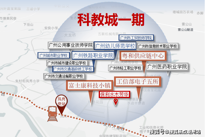 中建风榕台项目所属的板块为华南首个科教高地--广州科教城;属于产居一体,体量约为6个大学城,规划14.47平方公里,总投资约1800亿!未来预计进驻超30万师生;科教城目前一期已确定落地13所高校,规划7小学3中学1所九年一贯制学校。产业已引入工信部电子五所、海格通信、中关村智联汽车产业园等产业,重点发展智能汽车、无人信息、电子通信等高端制造业,虹吸超3万高精尖技术人才!