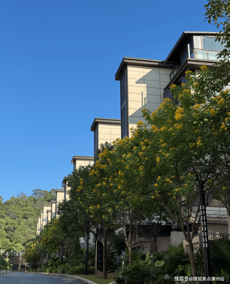 推窗,不再是眺望一片固定的风景,而是步入一个流动的自然剧场:初冬的黄花风铃木沿湖绚烂,紫花风铃木于叠翠园中绽放,杉树倒入私家湖面,山风微微穿堂而过,冬日的暖阳洒满院落。